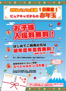 元旦限定✨お子様入場料無料ピュアキッズからのお年玉!