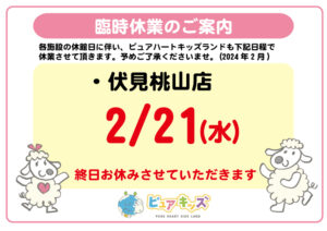 いつもピュアハートキッズランド伏見桃山店をご愛顧いただきありがとうございます。