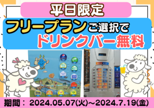 ★平日限定★フリープランご選択の方ドリンクバー無料