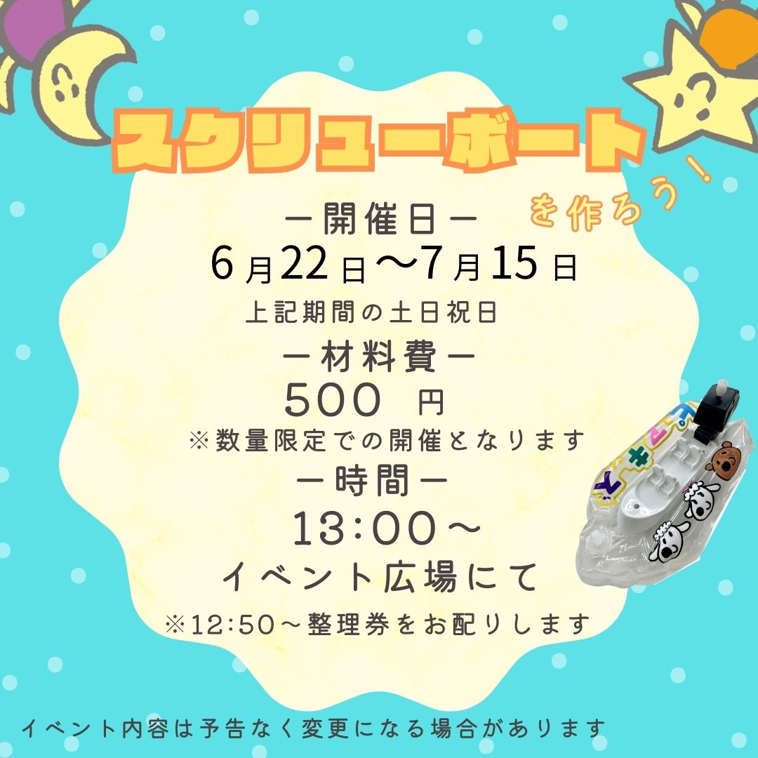 6月22日からスクリューボートを作ろうのイベントが開催されます✨