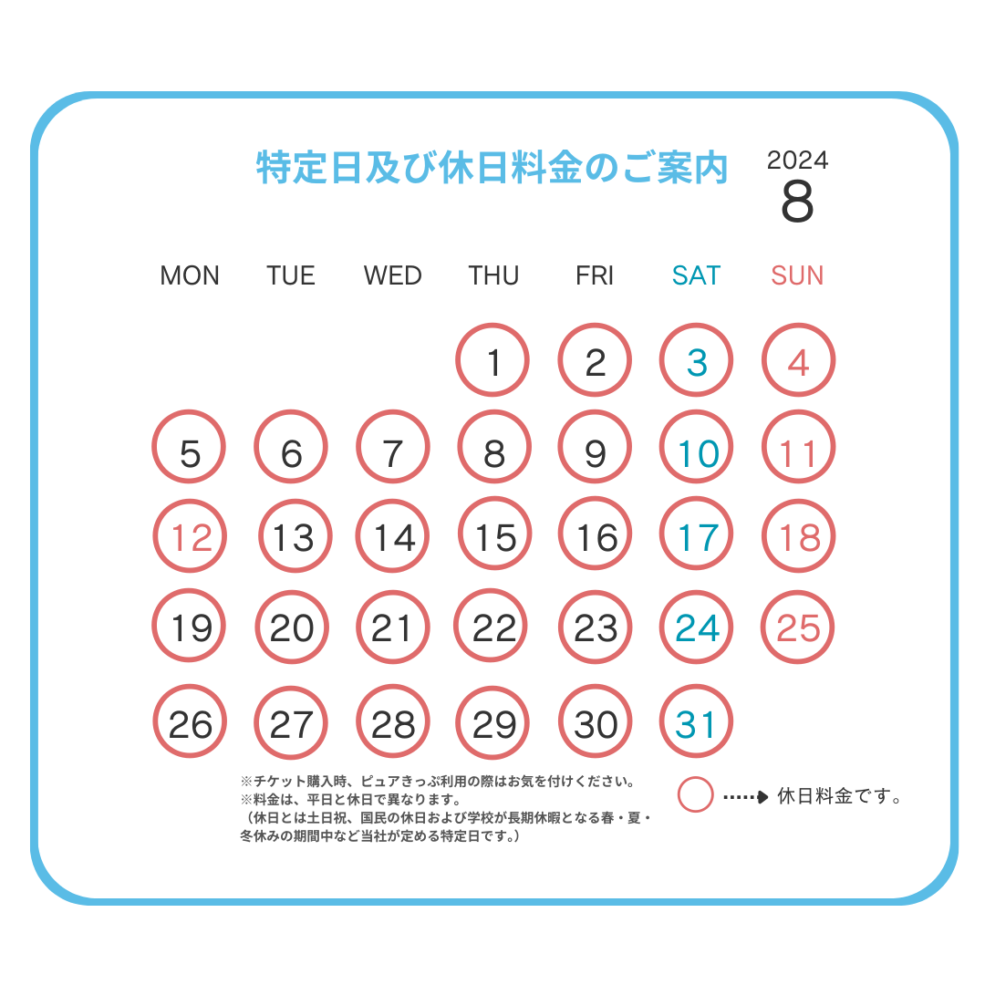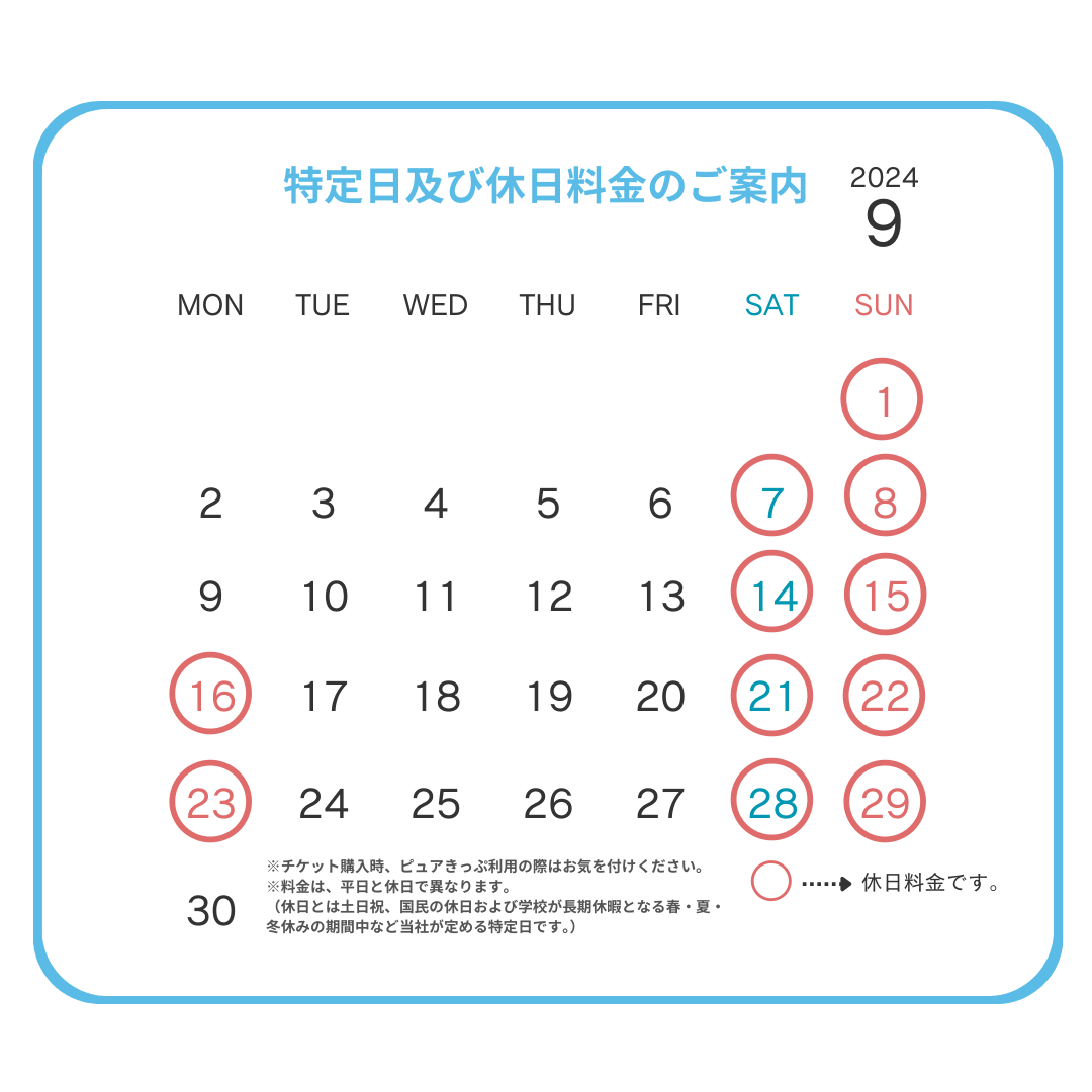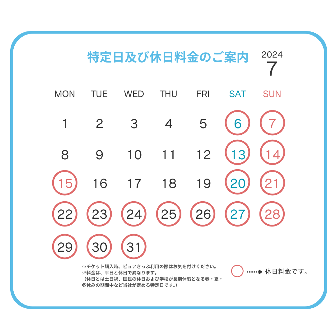 ピュアキッズより休日料金の日程のお知らせです。