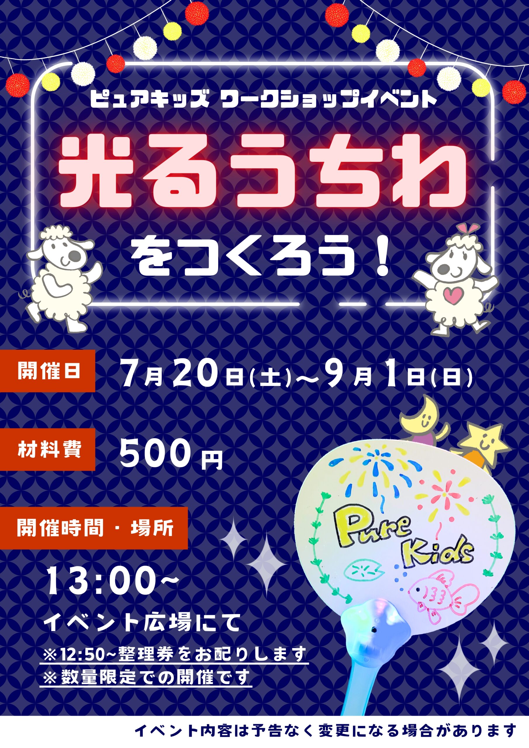 夏休みはぜひピュアキッズに遊びに来て、有料ワークショップもお楽しみください!