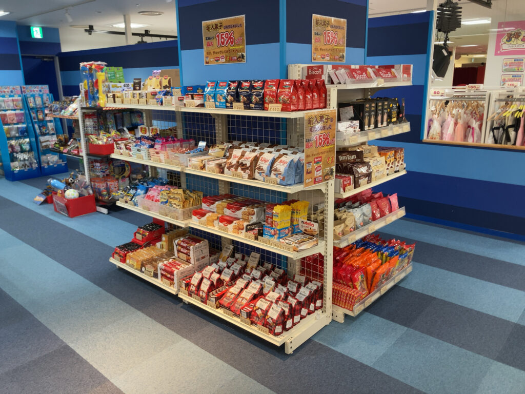 フレスポしんかな店では輸入菓子の販売を始めました。