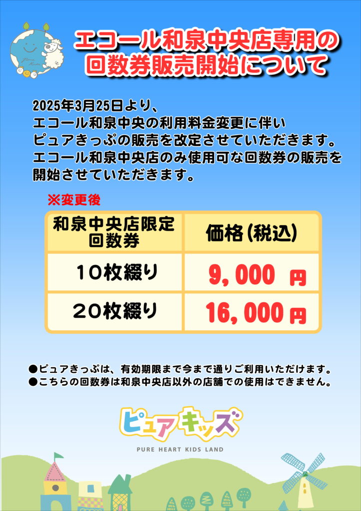 今後、和泉中央店限定の回数券として料金を改めて販売を開始させていただきます。