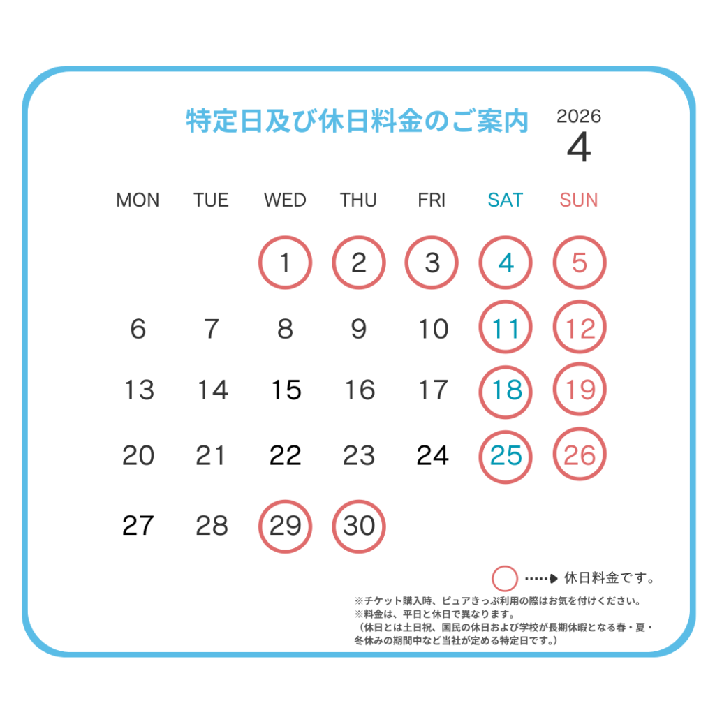 ピュアキッズより休日料金の日程のお知らせです。