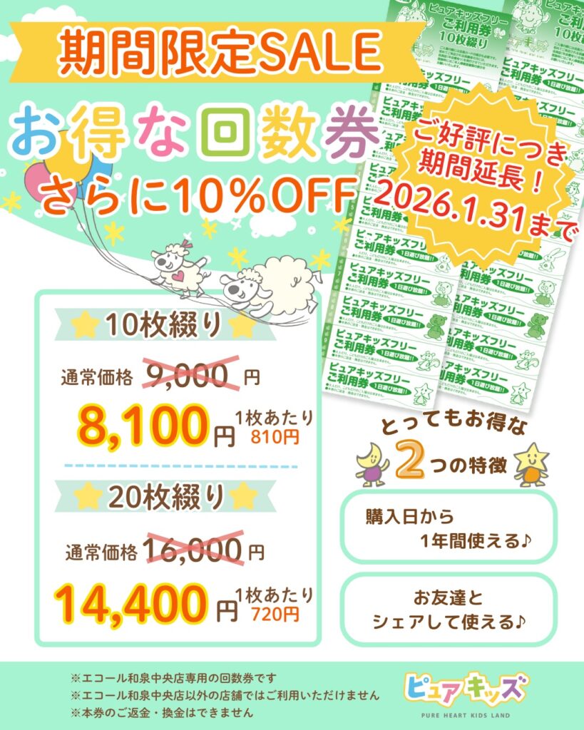 好評につき期間延長!!☆ピュアきっぷ10%OFFキャンペーンのお知らせ☆~2026/1/31
