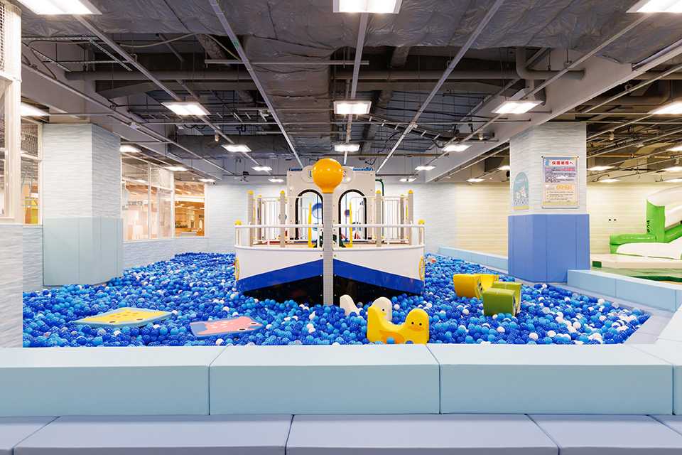 大型ボールプールや船の滑り台、ふわふわ遊具の滑り台があるよ。